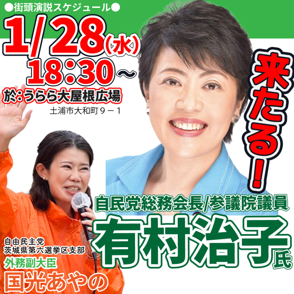 応援弁士として、有村治子参議院議員が来てくださいます!